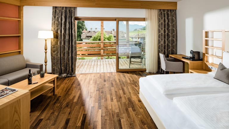 Mittendrin im süßen Süden. Zwischen Weinbergen und Palmen befindet sich das Lake Spa Hotel SEELEITEN fünf Gehminuten vom Kalterer See entfernt.