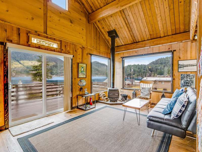 Das Lake Sutherland befindet sich in Port Angeles, Washington, und bietet eine idyllische Lage direkt am See. Von der Terrasse aus können Sie den atemberaubenden Blick auf den See und die umliegenden Berge genießen. Die Umgebung lädt zu Aktivitäten wie Radfahren ein, so dass Sie die Schönheit der Natur in vollen Zügen genießen können. Der internationale Flughafen William R. Fairchild ist nur 20 km entfernt, so dass Sie das Ferienhaus bequem erreichen können.