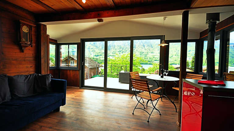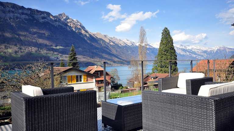 Das Lake View Chalet befindet sich in Bönigen und bietet Ihnen eine idyllische Lage inmitten der Natur. Von der großzügigen Terrasse aus können Sie den Blick auf die umliegenden Berge und den See genießen. Die Umgebung lädt zu Aktivitäten wie Wandern, Radfahren und Bootsfahrten ein. In der Nähe finden Sie auch verschiedene Sehenswürdigkeiten und Ausflugsziele, darunter die Stadt Bern und das Kurort Leukerbad. Der Flughafen Bern-Belp ist nur 40 km entfernt und bietet eine bequeme Anreisemöglichkeit.