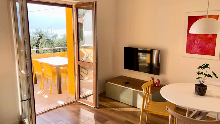 Das Lake View Sottodossi Apartment bietet Übernachtungsmöglichkeiten mit Bergblick. Zur Ausstattung gehören eine Terrasse und ein Balkon. Ein Garten und kostenloser Privatparkplatz sind ebenfalls vorhanden.