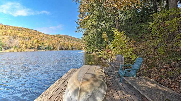 Das Lakefront Berkshires Retreat with Deck, Dock and Boat! in Great Barrington ist eine traumhafte Unterkunft mit Seeblick. Hier können Sie einen erholsamen Aufenthalt genießen und gleichzeitig die Nähe zu Sehenswürdigkeiten wie dem Norman Rockwell Museum und dem Tanglewood Musical Center erleben. Das Ferienhaus bietet 4 Schlafzimmer, eine voll ausgestattete Küche und 2 Badezimmer. WLAN ist in allen Bereichen kostenlos verfügbar und Privatparkplätze stehen ebenfalls zur Verfügung. Die Lage des Ferienhauses ist ideal, um die Umgebung zu erkunden und den Cranwell Spa & Golf Club zu besuchen.