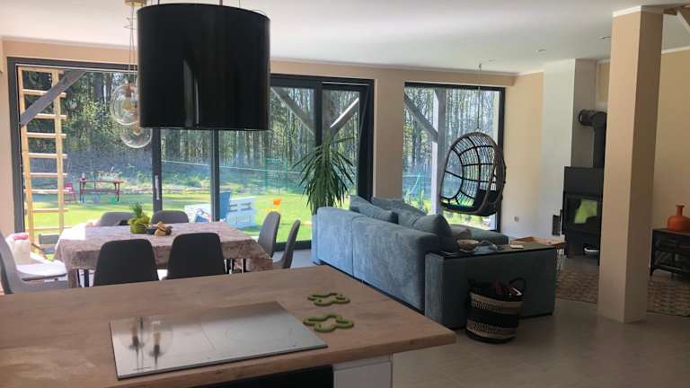 Das Ferienhaus Lakehouse Nakielno verfügt über 4 geräumige Schlafzimmer, die Ihnen eine erholsame Nacht bieten. Das Wohnzimmer ist gemütlich eingerichtet und verfügt über einen Flachbild-TV für Unterhaltung. Die Küche ist komplett ausgestattet mit einem Kühlschrank und einem Geschirrspüler, so dass Sie Ihre eigenen Mahlzeiten zubereiten können. Die 2 Badezimmer sind modern und verfügen über Duschen. Genießen Sie den Gartenblick von der Terrasse aus und entspannen Sie sich in der natürlichen Umgebung des Lakehouse Nakielno.
