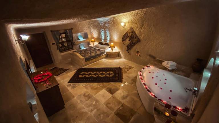 Das Asteria Cave Hotel in Göreme bietet seinen Gästen eine einzigartige Unterkunftserfahrung in geräumigen Höhlenzimmern mit modernen Annehmlichkeiten und einem persönlichen Service. Von hier aus können Sie eine herrliche Aussicht auf die Täler und Felsformationen des Nationalparks Göreme genießen und nach einem Tag voller Erkundungen in Kappadokien bei einem Glas Wein auf der Terrasse entspannen.