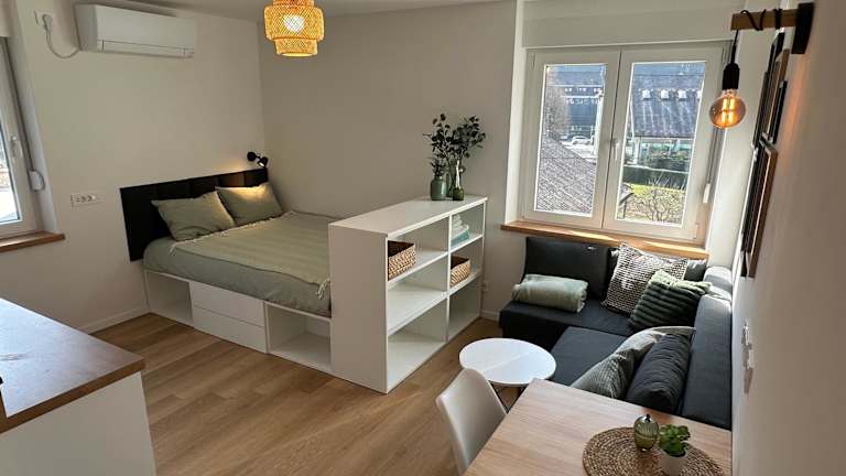Das Apartment besteht aus einem separaten Schlafzimmer, einer voll ausgestatteten Küche mit Kühlschrank und Geschirrspüler sowie einem Badezimmer. Den Gästen stehen kostenloses WLAN, Klimaanlage, Handtücher und Bettwäsche zur Verfügung. Die Unterkunft wird nach strengen Richtlinien gereinigt und versiegelt.