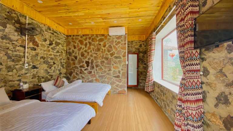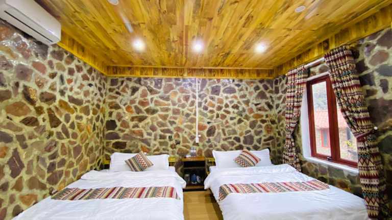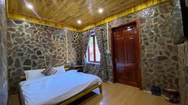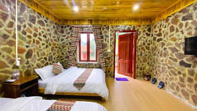 Das Lan Rừng Homestay in Lũng Niêo ist eine charmante Unterkunft mit einem wunderschönen Garten und einer Terrasse, die zum Entspannen einlädt. Das Hotel bietet auch ein Restaurant und eine Bar, in denen Sie köstliche Speisen und erfrischende Getränke genießen können. Der Zimmerservice, die 24-Stunden-Rezeption und das kostenfreie WLAN sorgen für zusätzlichen Komfort während Ihres Aufenthalts. Die Zimmer im Hotel bieten einen atemberaubenden Bergblick von der eigenen Terrasse aus. Sie verfügen alle über ein eigenes Bad mit einer Dusche und kostenlosen Pflegeprodukten, einen Flachbild-TV und Klimaanlage. Einige Zimmer verfügen auch über einen Balkon. Die Unterkunft stellt Ihnen Bettwäsche und Handtücher zur Verfügung. Starten Sie jeden Tag mit einem köstlichen asiatischen Frühstück, das im Lan Rừng Homestay serviert wird.