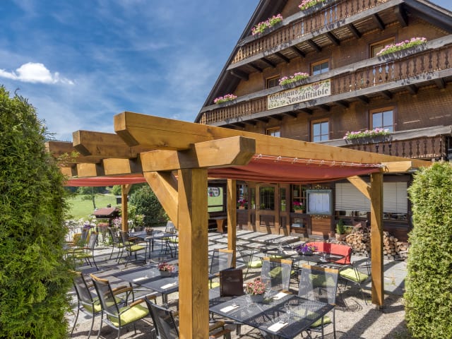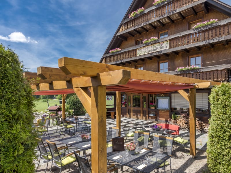 Berge, Täler, Bäche und Wald - Jostal, so ist es halt. Sterne sehen, Donner hören - laßt Euch von der Natur betören. Große Zimmer, schöne Sicht - vergesst das Träumen nicht! Gutes Essen, nette Menschen - das sind unsere Kompetenzen. Ohne Allergene oder Vegan - das ist uns nicht egal ! Das Team steht Schicht für Schicht - den klassischen Wirt, den gibt's hier nicht! Die Welt ist nicht mehr wie sie war - come as you are!