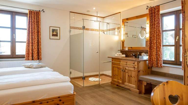 Die Zimmer im Weissbräu Aising sind im traditionellen Stil eingerichtet und bieten eine gemütliche Atmosphäre. Jedes Zimmer verfügt über Annehmlichkeiten wie einen TV mit Sat-Kanälen, einen Schreibtisch, einen Safe, eine Minibar und ein eigenes Badezimmer. Einige Zimmer bieten zudem einen Balkon, der einen schönen Blick auf die Umgebung ermöglicht.