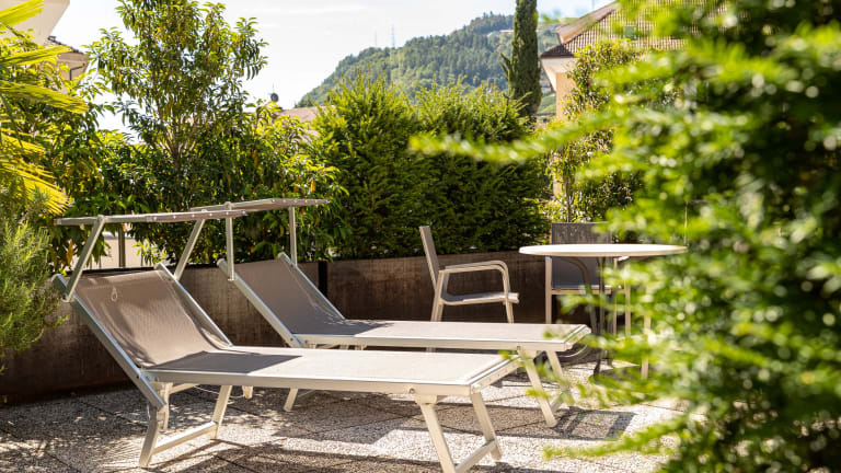 Auf der Sonnenterrasse finden Sie Liegestühle und Sitzmöglichkeiten zum Sonne tanken und genießen. Wandern Radfahren Schwimmen Reiten Tennis in der Umgebung