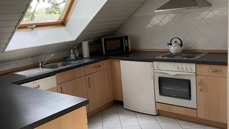 Das Apartment im Landhaus am Loh verfügt über ein Schlafzimmer, ein Wohnzimmer und eine voll ausgestattete Küche. Die Küche ist mit einem Kühlschrank und einer Kaffeemaschine ausgestattet, so dass Sie Ihre Mahlzeiten bequem zubereiten können. Das Apartment verfügt auch über ein Badezimmer mit einer Badewanne oder einer Dusche und einem Haartrockner. Handtücher und Bettwäsche werden gestellt, so dass Sie sich um nichts kümmern müssen.