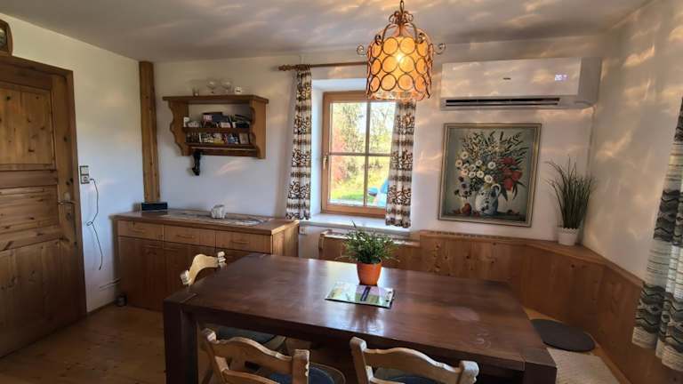 Das klimatisierte Ferienhaus im Landhaus auf der Alm verfügt über 3 gemütliche Schlafzimmer, ein geräumiges Wohnzimmer und eine voll ausgestattete Küche mit Kühlschrank und Kaffeemaschine. Es bietet auch 2 Badezimmer mit Dusche und Haartrockner. Zur Unterhaltung steht ein Flachbild-Sat-TV zur Verfügung.