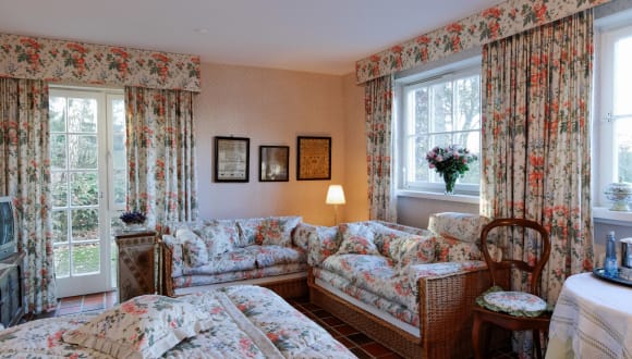 10 Zimmer im englischen Landhaus Stil, individuell und liebevoll mit Antiquitäten eingerichtet. Besonders bequeme Betten. Bis auf ein Zimmer haben alle Zimmer ein Bad mit Badewanne oder/und Dusche. Drei "Familienzimmer" bieten Platz für eine 3. oder 4. Person. In jedes Zimmer kann ein Babybett dazu gebucht werden. Die Honeymoon Suite ist nicht nur für unsere Hochzeitspaare reserviert.