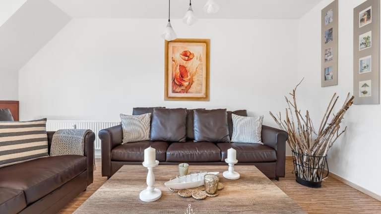 Die Ferienwohnung umfasst zwei Schlafzimmer, eine Küche mit Geschirrspüler und Ofen sowie ein Badezimmer mit Dusche, Haartrockner und Waschmaschine. Ein Balkon, ein TV und Gartenmöbel sind ebenfalls vorhanden. Die Unterkunft ist eine Nichtraucherunterkunft, sowohl in den privaten als auch in den öffentlichen Bereichen.