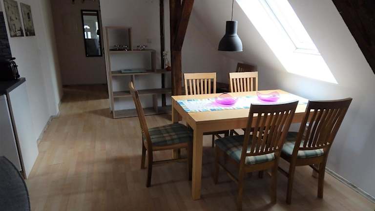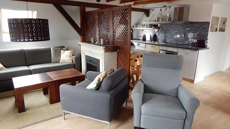 Die Ferienwohnung besteht aus zwei Schlafzimmern, einem Wohnzimmer sowie einer voll ausgestatteten Küchenzeile, die mit einem Kühlschrank und einer Kaffeemaschine ausgestattet ist. Des Weiteren steht ein Badezimmer mit Dusche und Haartrockner zur Verfügung. Handtücher und Bettwäsche sind ebenfalls im Angebot enthalten.