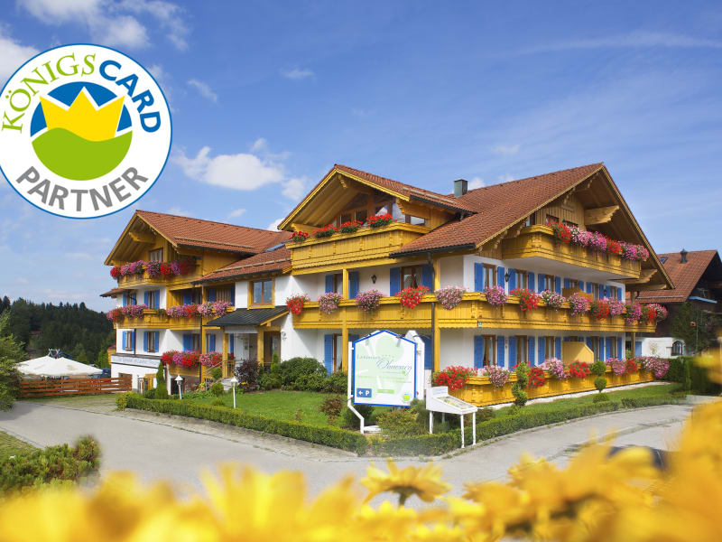 Im Landhaus Ohnesorg in Nesselwang werden Sie sich wohlfühlen und erholen! Unsere Ferienwohnungen sind mit Allem ausgestattet, was Sie für Ihren entspannten Aufenthalt benötigen. Die frische, saubere Luft in den Bergen trägt zu Ihrem Wohlbefinden bei und schenkt Ihnen einen gesunden Schlaf. Wir bieten Ihnen auch ein abwechslungsreiches Frühstücksbuffet für den perfekten Start in den Tag oder ab 10. Dezember 2023 deutsche - indische Gerichte im Restaurant im Haus. Natur genießen, die Stille in sich aufsogen und neue Kraft schöpfen, das ist das angestrebte Ziel. Aber auch Ausflüge zu verschiedenen Sehenswürdigkeiten, wie Schloss Neuschwanstein, Schloss Linderhof oder zum Bodensee, sind beliebt. Für Freizeithungrige mit Aktion bietet das Allgäu zahlreiche Kletterwälder, Rodelbahnen, Seilbahnen, Touren für Mountainbiking und vieles mehr. Dank der KönigsCard, welche jeder Gast kostenlos bekommt, sind bis zu 200 Aktivitäten sogar kostenlos.