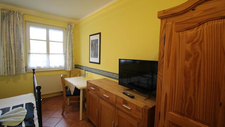 Die Zimmer im Landhaus Alt Reddevitz sind komfortabel und individuell eingerichtet. Sie verfügen über Annehmlichkeiten wie Sat-TV, Radio, eine Kochnische und einen Tee- und Kaffeekocher. Jedes Zimmer hat auch eine Außenterrasse, auf der Sie die frische Luft und die Ruhe der Umgebung genießen können.