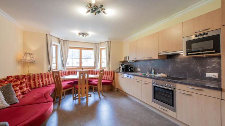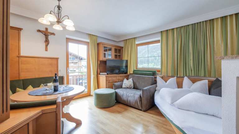 Die Apartments im Landhaus Severin sind geräumig und modern eingerichtet. Jedes Apartment verfügt über einen Balkon, auf dem Sie die frische Bergluft genießen können. Die Fußbodenheizung sorgt für angenehme Wärme in den kalten Wintermonaten. Zur Ausstattung gehören auch ein Flachbild-Sat-TV und eine moderne Küche, in der Sie Ihre eigenen Mahlzeiten zubereiten können. Das Badezimmer ist mit einem Haartrockner ausgestattet.
