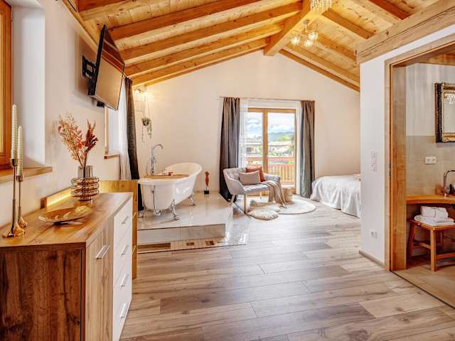 Die Unterkunft befindet sich in der Region Bayern in Rottach-Egern, umgeben von einer malerischen Landschaft, die Möglichkeiten zum Wandern und Skifahren bietet.