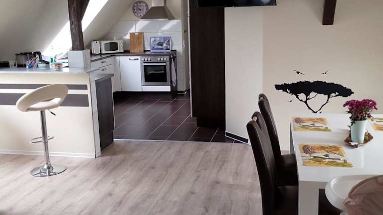 Das Apartment im Landhaus Waldblick verfügt über 2 Schlafzimmer und 1 Badezimmer. Es bietet Platz für bis zu 4 Personen und ist mit allen Annehmlichkeiten ausgestattet, die Sie für einen komfortablen Aufenthalt benötigen. Die Zimmer sind gemütlich eingerichtet und bieten Ihnen eine angenehme Atmosphäre. Das Apartment verfügt über einen Flachbild-Sat-TV, einen Essbereich und eine voll ausgestattete Küche, in der Sie Ihre eigenen Mahlzeiten zubereiten können. Sie können auch die Terrasse mit Blick auf den Garten nutzen, um die frische Luft und die schöne Umgebung zu genießen.