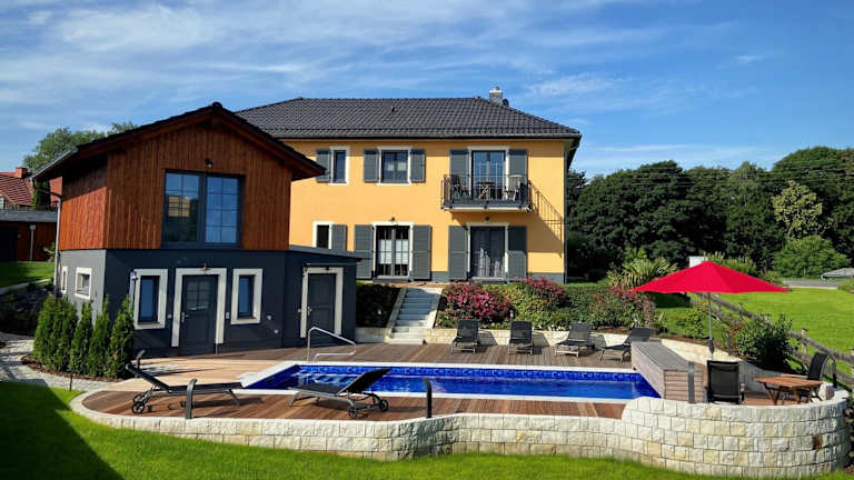 Das Landhaus Waltersdorf - Pool & Wellness zeichnet sich durch einen Außenpool sowie einen weitläufigen Garten mit Blick auf die Umgebung aus. WLAN steht den Gästen kostenfrei zur Verfügung, und es werden kostenlos Fahrräder angeboten.