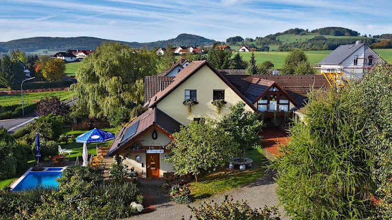 Das Landhaus Will in Hilders bietet eine idyllische Unterkunft mit einem saisonalen Außenpool, einem Garten und kostenfreien Fahrrädern. Die Apartments sind komfortabel ausgestattet und verfügen über einen Balkon sowie eine voll ausgestattete Küche. Genießen Sie ein köstliches Frühstück und nutzen Sie die nahegelegenen Möglichkeiten zum Wandern, Skifahren und Radfahren.