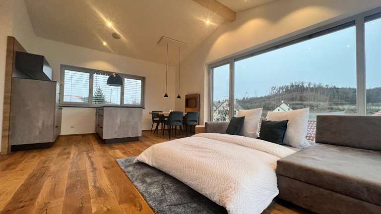 Die Unterkunft Landhaus zum See - Fewo Eiche befindet sich in Überlingen, in der Nähe des Bodensees, etwa 35 km vom MAC - Museum Art & Cars entfernt. Die Umgebung bietet Zugang zu verschiedenen Sehenswürdigkeiten, darunter die Klosterinsel Reichenau und die Stadt Konstanz. Der Flughafen Friedrichshafen ist etwa 40 km entfernt.