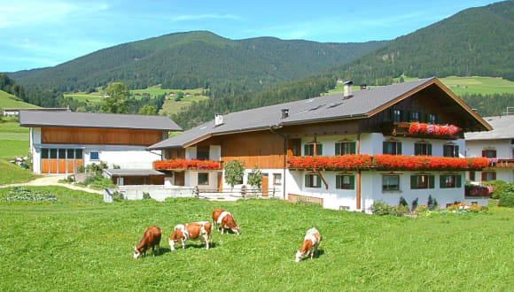 Entspannung erleben, Natur fühlen, Aussicht genießen! Auf unserem kleinem Hof, auf dem alle Tiere noch einen Namen haben, fühlen Sie hautnah den Kreislauf der Natur im Jahreslauf mit: Das Erwachen und Blühen im Frühjahr, die Zeit der Ernte im Sommer, die Vielfalt der Farben im Herbst und die Ruhe sowie Stille im Winter. Genießen Sie die Aussicht auf die Dolomiten und die Gsieser Bergwelt von ihrem Balkon oder durch die große Glasfront Ihres Wohnzimmers!