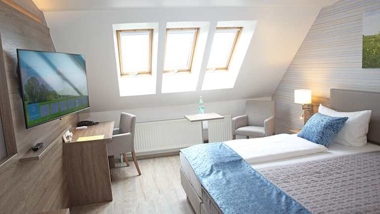 Die hell und komfortabel, komplett renovierten eingerichteten Zimmer befinden sich auf 2 Etagen verteilt, mit Fahrstuhl zu erreichen. Ausgestattet mit Dusche/WC bzw. Badewanne/WC, einem großen und schwenkbaren LCD SAT-TV mit Radio, kostenfreien high speed Internet per WLAN, einer separaten Sitzecke sowie weiteren Annehmlichkeiten, geben hier die Basis für einen gelungenen Aufenthalt.