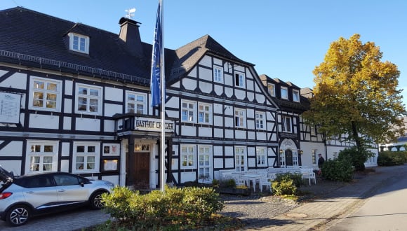 Mitten im Herzen des kleinen Ortes Hirschberg liegt unser einladendes Landhotel. Vom Hotel aus kann der Gast die schöne Umgebung des Sauerlandes erkunden.