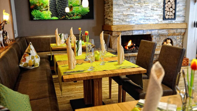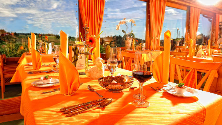 Stilvolles Panorama-Restaurant, Romantisches Kaminzimmer, Gemütliche Kachelofen-Lounge mit Bar, Frühstücksbüffet, Terrassenwirtschaft - alles ebenerdig zu erreichen. Regionale Heimatküche aus dem Naturpark Schwarzwald und internationale Spezialitäten bietet unser Küchenteam. Verschiedene Ernährungsformen wie vegetarische,-glutenfreie,- laktosefrei und basische Kost werden angeboten. (bei Bekanntgabe bei der Buchung)