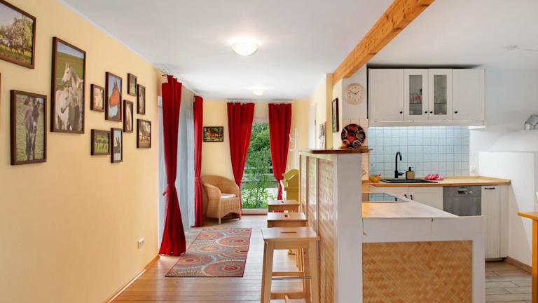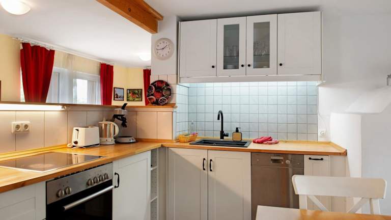 Die Unterkunft verfügt über eine eigene Küche, die mit einem Kühlschrank und einem Geschirrspüler ausgestattet ist. Es sind keine weiteren Informationen zu Verpflegungsmöglichkeiten vorhanden.