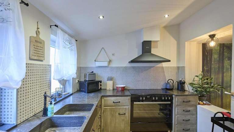 Das Ferienhaus besteht aus 4 Schlafzimmern, einem Wohnzimmer sowie einer voll ausgestatteten Küche, die mit einem Kühlschrank und einer Kaffeemaschine ausgestattet ist. Es gibt 3 Badezimmer mit Duschen. Handtücher und Bettwäsche werden bereitgestellt. Die Unterkunft ist eine Nichtraucherunterkunft, in der sowohl öffentliche als auch private Bereiche rauchfrei sind.