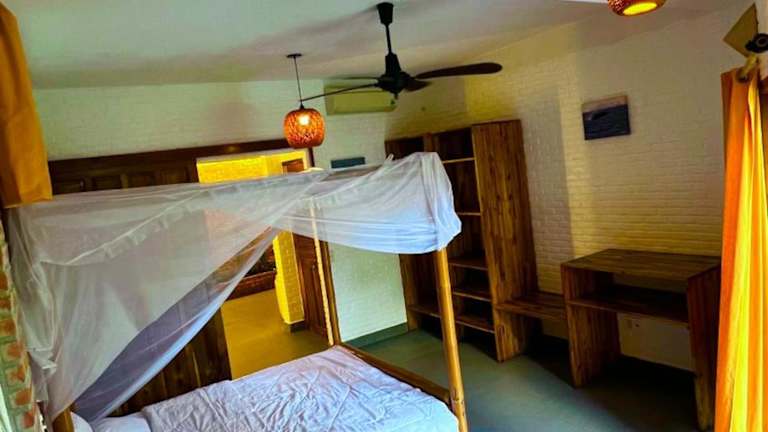 Die Villa im Lang Ca Voi ll The Whales Village ll Mui Ne bietet Ihnen komfortable Unterkünfte mit einem Schlafzimmer, einem Wohnzimmer und einer voll ausgestatteten Küche. Die klimatisierten Zimmer sorgen dafür, dass Sie auch an warmen Tagen eine angenehme Temperatur haben. Genießen Sie den Meerblick von Ihrem Zimmer aus und entspannen Sie sich in dieser gemütlichen Unterkunft.