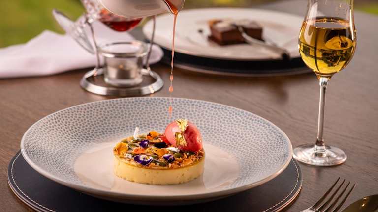 Das Restaurant im Langdale Chase hat Auszeichnungen mit AA-Rosetten erhalten und serviert ein Tagesmenü bei Panoramablick auf den See. Mahlzeiten können auch auf der Gartenterrasse oder dem Balkon eingenommen werden.
