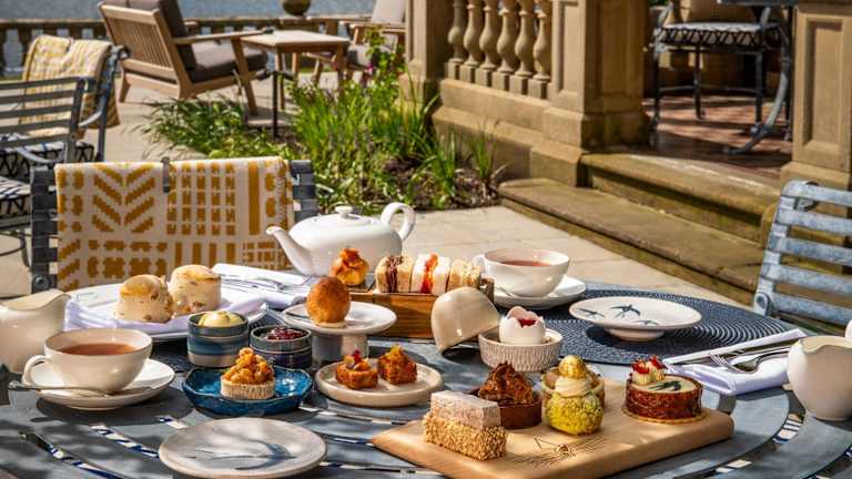 Das Langdale Chase Hotel ist ein elegantes Landhaus mit einem charmanten und individuellen Design. Es bietet eine attraktive Steinterrasse, auf der Gäste den Nachmittagstee mit Blick auf den See genießen können.