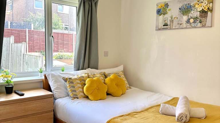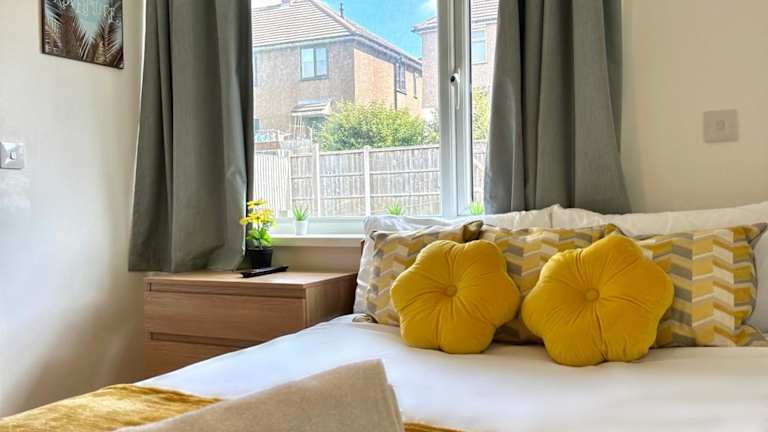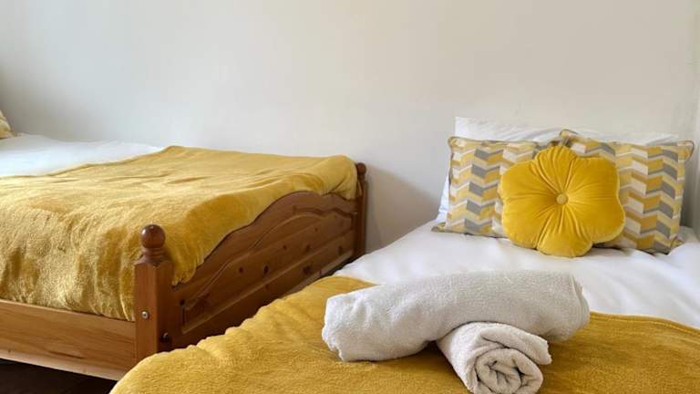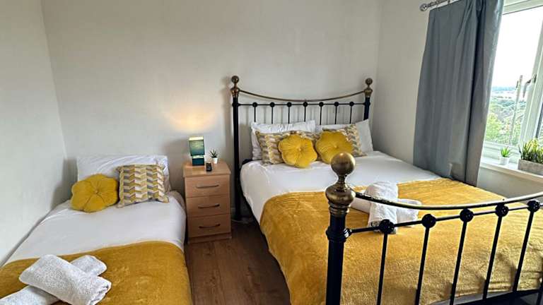 Das Ferienhaus bietet fünf Schlafzimmer, insgesamt sieben Betten und drei Badezimmer, die jeweils mit Dusche und Badewanne ausgestattet sind. Handtücher und Bettwäsche werden bereitgestellt. Das Haus bietet zudem Stadt- und Gartenblick.