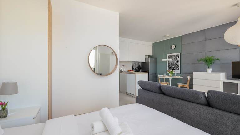 Das Studio ist mit einem Satelliten-Flachbild-TV ausgestattet. Die Küchenzeile verfügt über einen Kühlschrank, einen Geschirrspüler und einen Ofen. Die Unterkunft bietet außerdem ein Badezimmer mit Dusche, kostenlosen Pflegeprodukten und einem Haartrockner. Bettwäsche, Handtücher und Wäsche werden nach den Richtlinien der örtlichen Behörden gewaschen.