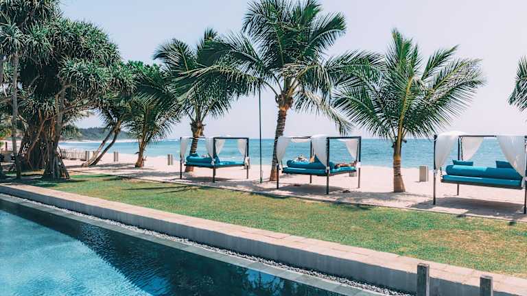 Das Hotel liegt am schönsten Strandabschnitt der Südwestküste von Sri Lanka, genauer gesagt am Mirissa Beach. Die Umgebung bietet eine ruhige Atmosphäre und ist vom Stadtzentrum Matara etwa 8,6 km entfernt. In der Nähe befinden sich weitere Strände wie Hiriketiya Beach und der Bahnhof Kamburugamuwa. Der Flughafen Bandaranaike International liegt ca. 180 km entfernt.