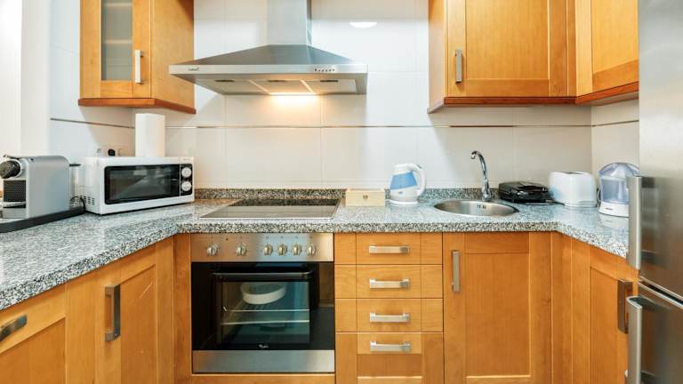 Die Ferienwohnung umfasst ein Schlafzimmer, eine voll ausgestattete Küche mit Kühlschrank und Geschirrspüler sowie ein Badezimmer mit Dusche, Haartrockner und Waschmaschine. Handtücher und Bettwäsche werden zur Verfügung gestellt.