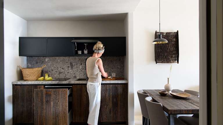 Die Appartements und Suiten im Laqua by the lake sind Nichtraucherzimmer, ausgestattet mit Klimaanlage, Fußbodenheizung, einem Flachbild-TV, kostenlosem WLAN sowie einem Safe. Jedes Zimmer verfügt über eine voll ausgestattete Küche mit modernen Geräten und einem eigenen Bad mit hochwertigen Pflegeprodukten, einer Dusche, Bademänteln und Haartrockner.