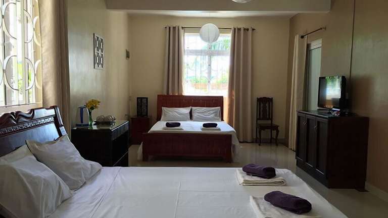 Das Lariad BnB in Flic-en-Flac auf Mauritius ist die perfekte Unterkunft für einen entspannten und günstigen Urlaub. Das Hotel bietet einen Innen- und Außenpool sowie kostenfreies WLAN. Die Zimmer sind komfortabel ausgestattet und verfügen über ein eigenes Bad. Jeden Morgen wird ein Frühstücksbuffet serviert und auf den Balkonen mit Gartenblick können Sie sich entspannen. Das Hotel liegt nur wenige Gehminuten vom Strand, Restaurants, Geschäften und dem Einkaufsviertel entfernt. In der Umgebung gibt es zahlreiche Aktivitäten, die Sie unternehmen können, und das freundliche Personal steht Ihnen gerne bei der Organisation zur Seite. Ein Transferservice zum Flughafen kann arrangiert werden.