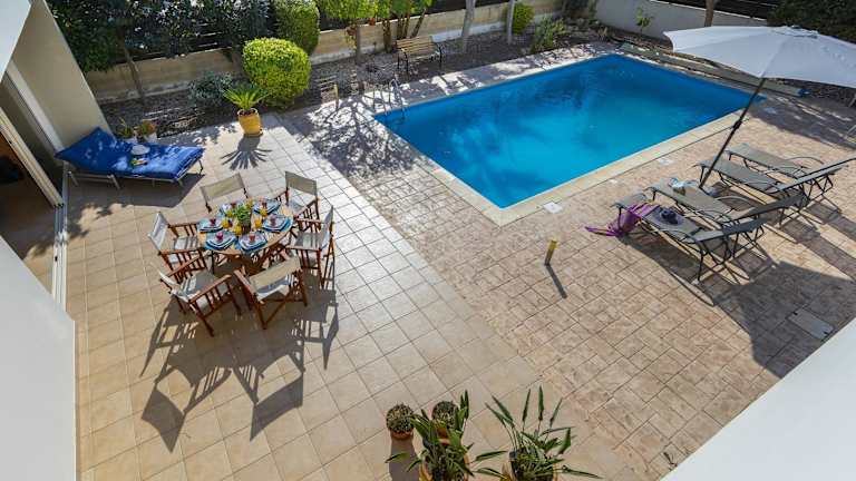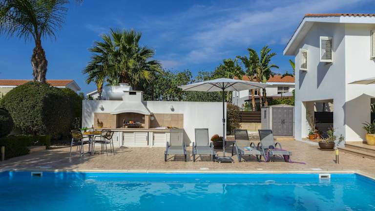 Die Larnaca Villa Anthea 12 ist die perfekte Unterkunft für einen entspannten und komfortablen Aufenthalt in Larnaka. Mit einem eigenen Pool, einem Garten und Grillmöglichkeiten bietet die Villa alles, was Sie für einen unvergesslichen Urlaub benötigen. Die voll ausgestattete Küche, die klimatisierten Schlafzimmer und die beiden Badezimmer sorgen dafür, dass es Ihnen an nichts fehlt. Die Nähe zum Strand Meneou und zum internationalen Flughafen Larnaka machen diese Villa zu einer idealen Wahl für Ihren Aufenthalt.