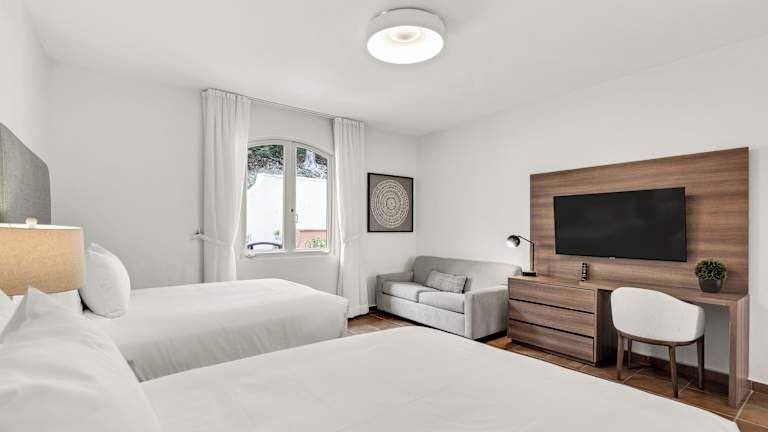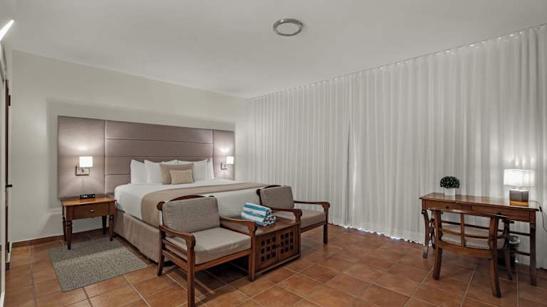 Die Zimmer sind klimatisiert und ausgestattet mit einem Schreibtisch, einer Kaffeemaschine, einem Safe und einem Flachbild-TV. Jedes Zimmer verfügt über einen Balkon und ein eigenes Badezimmer mit Dusche. Bestimmte Zimmer bieten eine Küche mit Kühlschrank, Ofen und Mikrowelle. Zusätzlich werden Bettwäsche und Handtücher bereitgestellt.