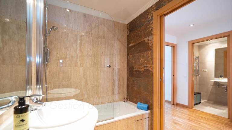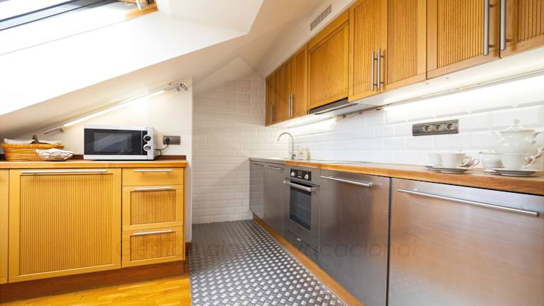 Die Ferienwohnung verfügt über zwei Schlafzimmer, eine voll ausgestattete Küche mit Geschirrspüler und Herdplatte sowie eine Waschmaschine. Darüber hinaus stehen zwei Badezimmer mit einem Haartrockner zur Verfügung.
