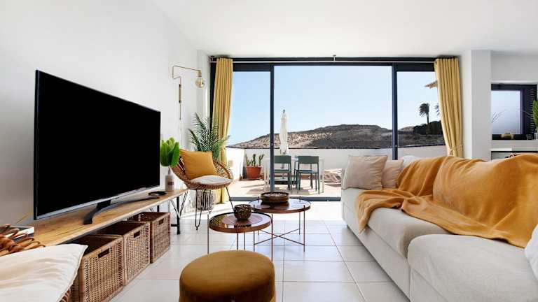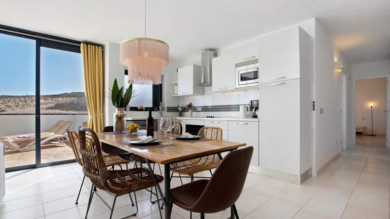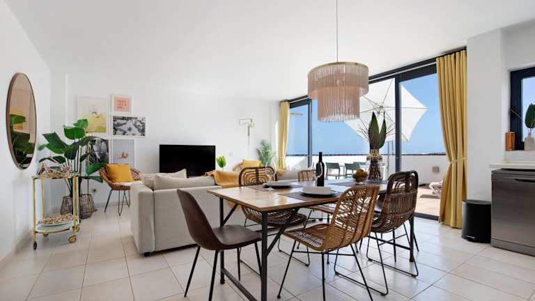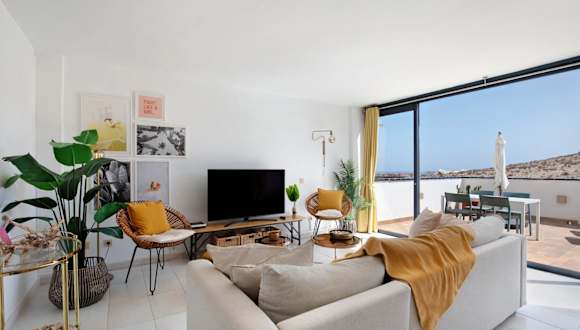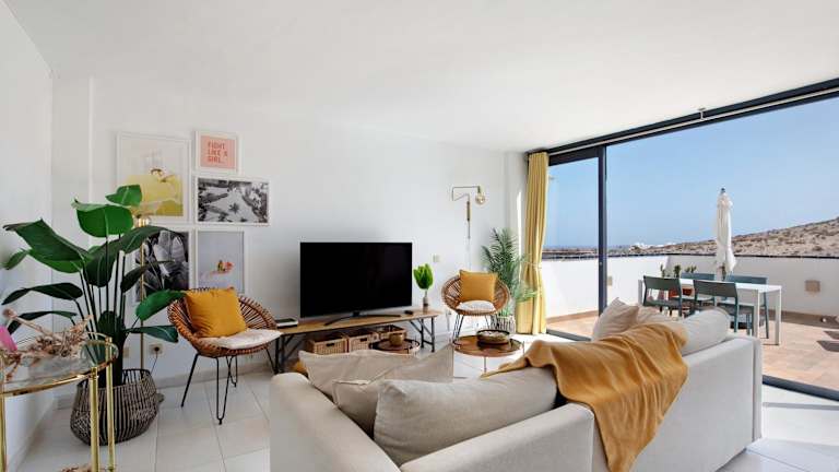 Las Vistas Apartment mit Meerblick bietet klimatisierte Übernachtungsmöglichkeiten und verfügt über eine Veranda/Pati, Balkon und eine Terrasse mit Meerblick. Die Unterkunft ist Nichtraucher und bietet moderne Annehmlichkeiten wie kostenlosen WLAN-Zugang und einen Aufzug. Die Unterkunft ist auch darauf ausgelegt, Gästen mit Mobilitätseinschränkungen entgegenzukommen.
