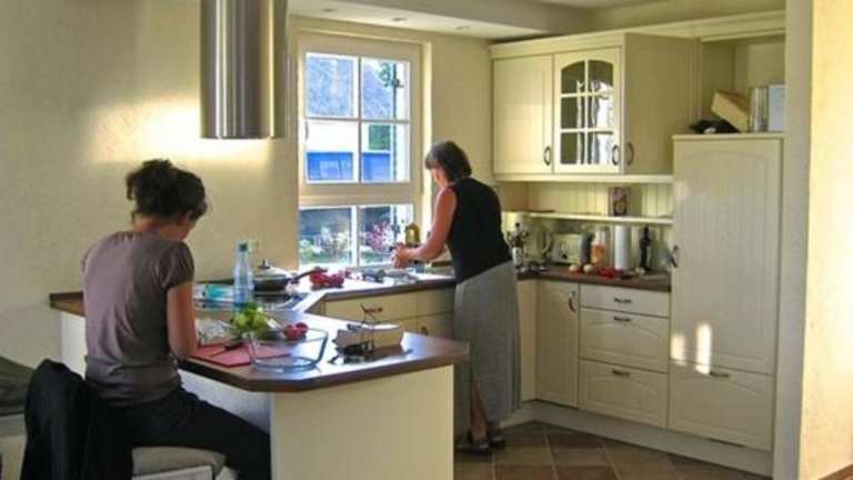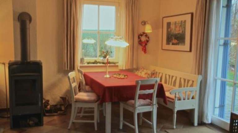 Das Ferienhaus ist ausgestattet mit zwei Schlafzimmern, einem Fernseher sowie einer voll ausgestatteten Küche. Die Küche verfügt über einen Kühlschrank, einen Geschirrspüler, eine Waschmaschine, einen Ofen und eine Mikrowelle.