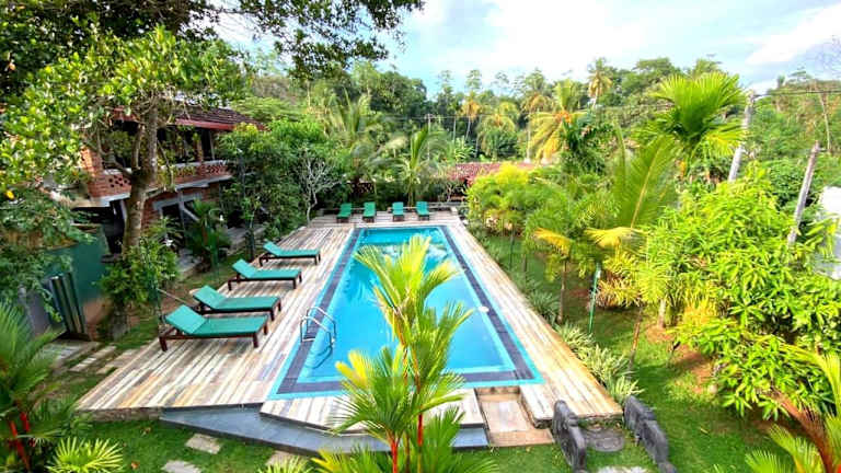 Lavendra Villa Mirissa ist eine Unterkunft mit Gartenblick, die verschiedene Annehmlichkeiten wie einen Außenpool, einen Garten, eine Gemeinschaftslounge und eine Terrasse bietet. Die Unterkunft ermöglicht den Gästen die Nutzung von kostenlosen Fahrrädern sowie kostenfreiem WLAN und Privatparkplätzen.
