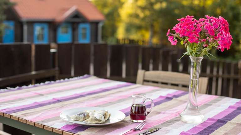 In der Unterkunft wird ein vegetarisches, veganes oder glutenfreies Frühstück angeboten. Es gibt ferner eine Speisenlieferung in die Unterkunft, die bei Bedarf organisiert werden kann. Die Unterkunft bietet auch Pausenverpflegung an sowie spezielle Speisen für diätetische Bedürfnisse auf Anfrage.