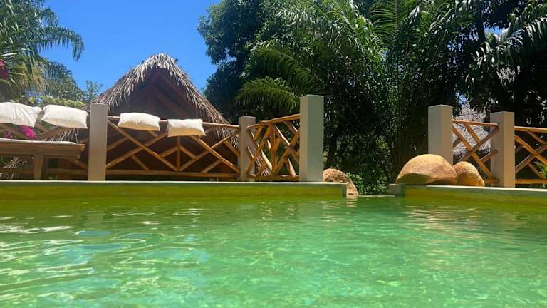 Das Le 19 des Hauts Manguiers ist eine traumhafte Villa mit Meerblick, die Ihnen ein luxuriöses und komfortables Zuhause in Nosy Be bietet. Genießen Sie den eigenen Pool, den Garten und die Terrasse sowie die Nähe zum Strand Ambondrona. Die Villa verfügt über 3 Schlafzimmer, ein geräumiges Wohnzimmer und eine voll ausgestattete Küche. Ein kontinentales Frühstück wird Ihnen serviert und kostenfreie Privatparkplätze stehen zur Verfügung. Erkunden Sie die wunderschönen Strände Madirokely und Djamanjary, die nur eine kurze Autofahrt entfernt sind.