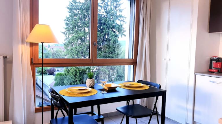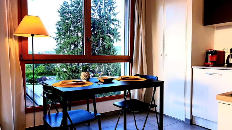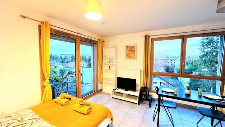 Das Le Bellevue à 10min du centre à pied in Annecy bietet komfortable Unterkünfte mit Balkon und kostenfreiem WLAN. Die Lage des Apartments ermöglicht es Ihnen, die umliegenden Sehenswürdigkeiten wie den See Bourget, das Stade de Genève und die Kathedrale St. Pierre zu erkunden. Die voll ausgestattete Küche ermöglicht es Ihnen, Ihre eigenen Mahlzeiten zuzubereiten, und Handtücher und Bettwäsche werden gestellt. Verpassen Sie nicht die Gelegenheit, die Vereinten Nationen in Genf zu besuchen, die nur 46 km entfernt liegen.