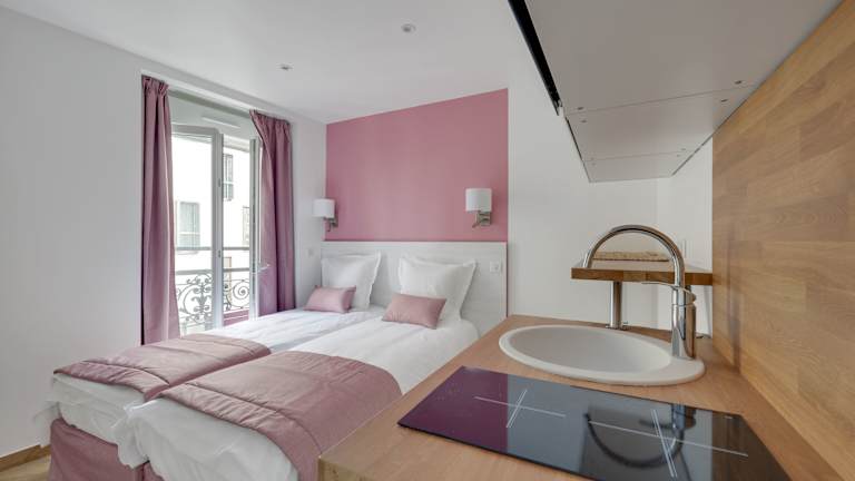 Das Hotel Le Bellevue liegt nur 4,1 km vom Centre Pompidou und der Opéra Bastille entfernt. In der Umgebung finden Sie zahlreiche Restaurants, Cafés und Geschäfte. Der Bahnhof Gare de l'Est ist ebenfalls nur 4,3 km entfernt und der Bahnhof Gare du Nord erreichen Sie nach 4,4 km. Der Flughafen Paris-Charles-de-Gaulle ist etwa 20 km entfernt.